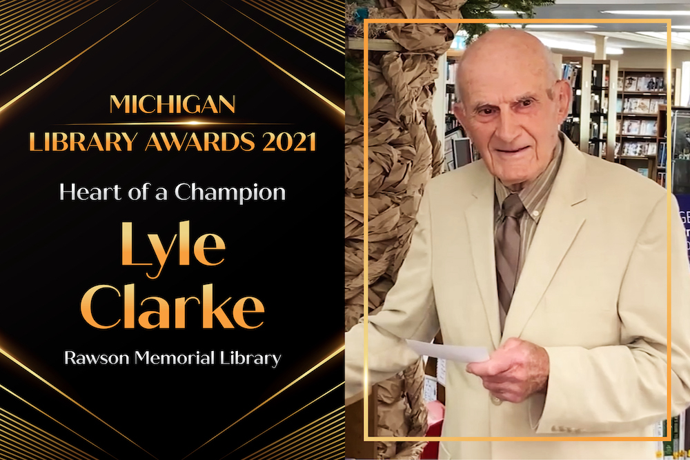 The 2021 Heart of a Champion Award was awarded to Lyle Clarke of the Rawson Memorial Library. This award recognizes a library supporter who has shown an exceptional commitment to libraries or the library profession through continued advocacy and supporting or providing funding for their local library.