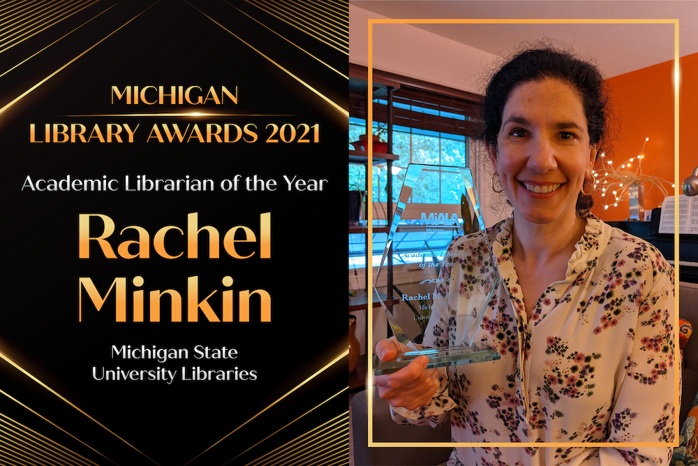 The 2021 Academic Librarian of the Year was awarded to Rachel M. Minkin from Michigan State University Libraries. This award recognizes the outstanding accomplishments of a librarian or library administrator and their contributions to their institution and academic libraries within the academic year 2020-2021.