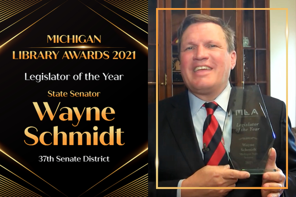 The State Legislator of the Year was again awarded to State Senator Wayne Schmidt of the 37th State Senate District. This award is presented to elected officials in recognition of outstanding leadership in promoting libraries and supporting legislation or amendments that advance our legislative goals.